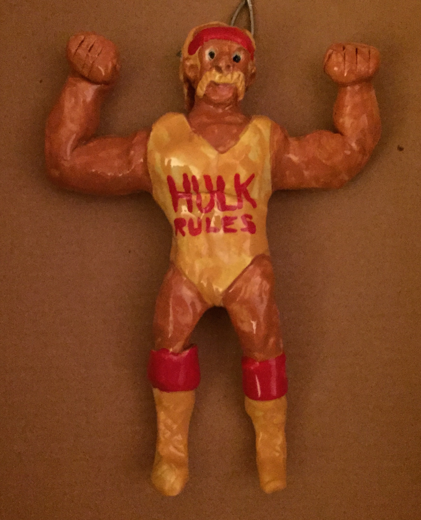 The Hulkster survived Andre the Giant, King Kong Bundy and every other foe the WWE put in his path during the 1980s, but Hogan met his match in the fire of 2009. Fortunately, my dad remade the ornament, and truth be told, the second version was even cooler than the original, featuring the iconic red and yellow attire and “Hulk Rules” tank top. Because “whatcha gonna do, brother, when Hulkamania and Tom Hubert’s ceramic skills run wild on you!”